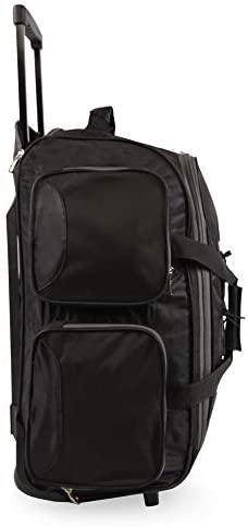Travel easily with everything you need with this small rolling duffel bag. A full zippered main compartment allows you to easily access almost everything packed inside this rolling duffel bag. Four side zippered pockets makes your items easy to access. A bungee cord allows you to store your jacket or other lightweight items. Carry on size.