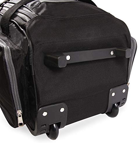 Multiple side zippered pockets.Internal handle system.Handle extends up to 21″.Top bungee cord.L-22 X W-11 X H-22