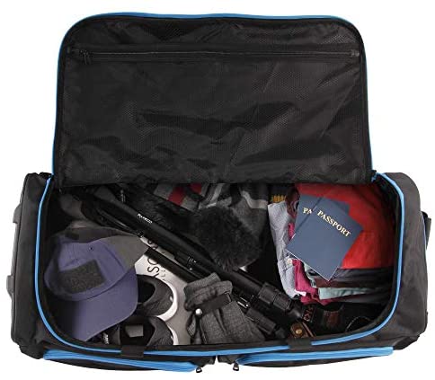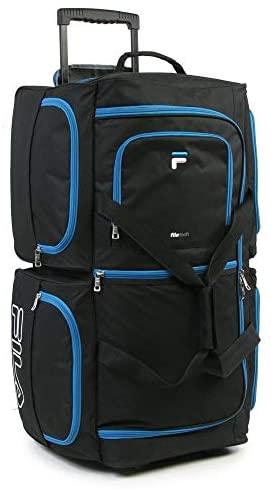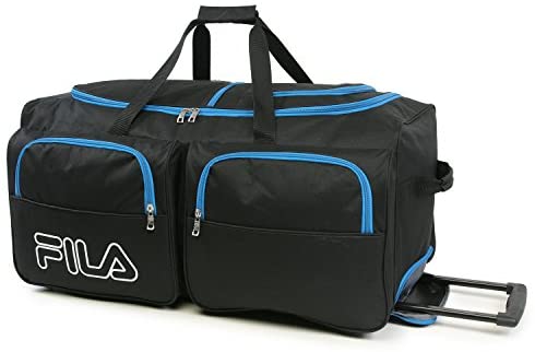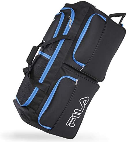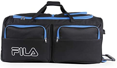 Fila 7-Pocket Large Rolling Duffel Bag, Black/Blue