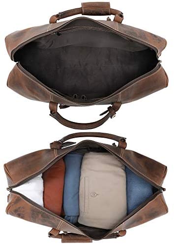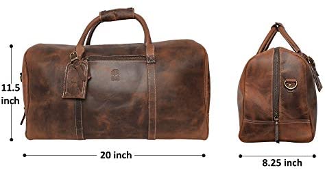 100% Genuine Leather Travel Duffel Bag Boarding Bag Luggage Garment Bag Carry On Overnight Weekend Bag. Key Features: – Dimensions: 20″(L) * 12″(H) * 9″(D). – Produced using Genuine Buffalo Leather. – Spacious Compartment to Carry Clothes, iPad, Magazines, Books, Travel Items, etc. – Easy to organize stuff with one zippered pocket, multiple cards & pen holders as well as a phone holder inside the bag. – 2 Large Carry Handles On Top, One Adjustable Strap – One zipper on each side of the bag. – Use of High-Quality Cloth lining Inside Bag. – A Fair Trade Product. A perfect gift bag for Men, Women, teacher & best friend on every Occasion like Birthday gift, Christmas gift, Friendship gift, Thank you gift, 3rd Wedding Anniversary gift, Xmas gift, Valentine’s day gifts for him and her or a great deal to buy on Black Friday deal 2021 and cyber Monday sale. A retro handmade medium size carryon bag for adult. Experience the world traveling with our durable cabin luggage. A trendy & unique gift for frequent flight traveler. The bag is designed in such a way so that each leather full grain is taken care of in a professional manner. So that you don’t compromise on your fashion.