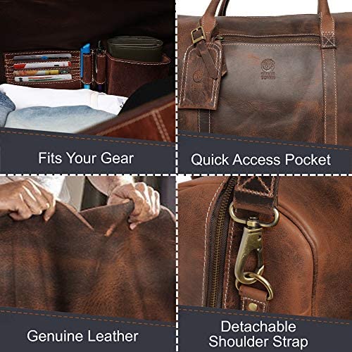 ✅ RUGGED THROUGH & THROUGH: Indiana Jones would be proud to carry this heavy-duty duffle bag featuring break-resistant YKK zippers, stout brass fittings and a thick, premium cloth lining.