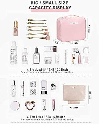 【Cosmetics All in One Bag】The main capacity bag size of our cosmetic bag is 9.84*7.48*2.36 inch, which can easily store all cosmetics less than 9.84 inches, such as skin care products, liquid foundation, eye shadow, blush, etc. Whether it’s daily carry or travel , it fully meets your needs.