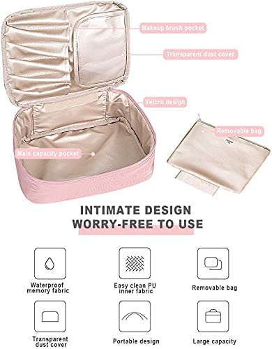 【Waterproof Fabric & Thicken Sponge】Both inner and outer double layers fabric have a waterproof design. The PU inner fabric is easy to clean, and the makeup stains can be easily removed by makeup remover. The sponge protection also thickened, whether it is daily carry or travel, it always protects your cosmetics.