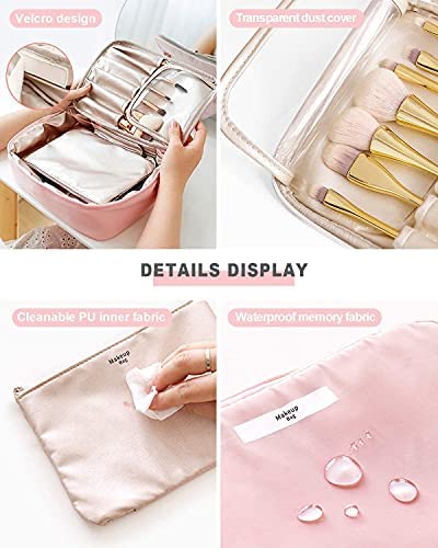 【Dust-proof Cosmetic Brush Cover】Are you still worried that the cosmetic brush will stain the bag? Our toiletry bag is designed with a waterproof and dust-proof transparent cosmetic brush cover, which perfectly separates the cosmetic brush from the bag fabric, and there is no need to worry about mutual dyeing. In addition, the brush bag is heightened and widened, so you can put more brushes and will not drop easily.