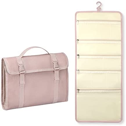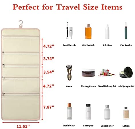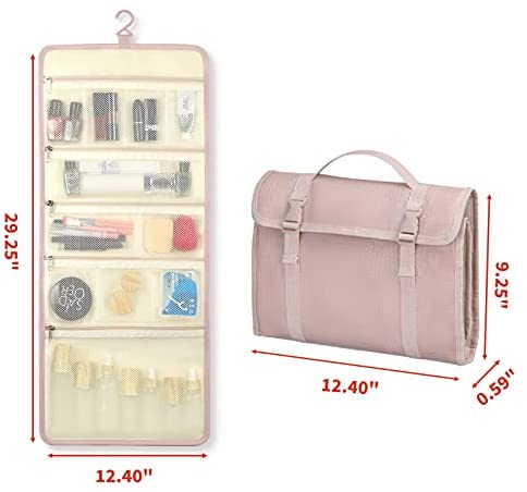 Spacious Capacity: 12.4 x 9 x 0.6 inches (rolled), 12.4 x 29.5 inches (open). You can put your travel-sized essentials, lotions, shampoo, powder foundation and so on in one bag. Make your travel more comfortable.