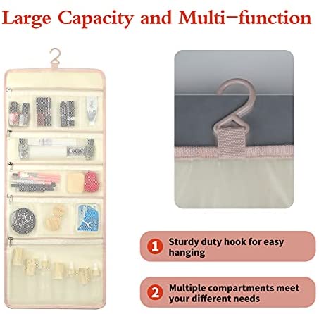Save Counterspace: Built-in hook allows for securely hanging the cosmetic bag from a shower, hook, or towel rack, making it easy to view and fast access to all your toiletries and keeps countertops free of small items.