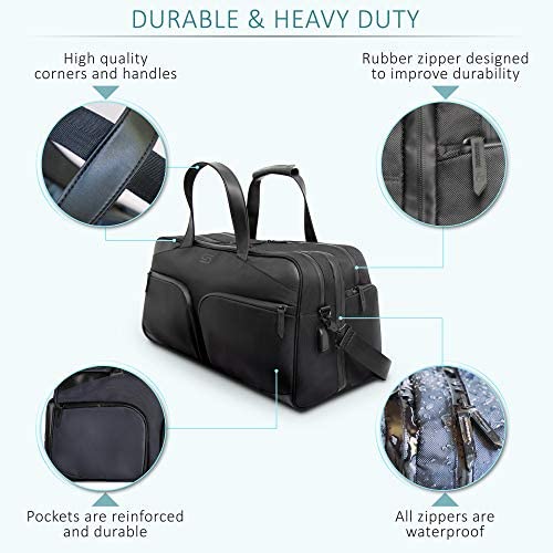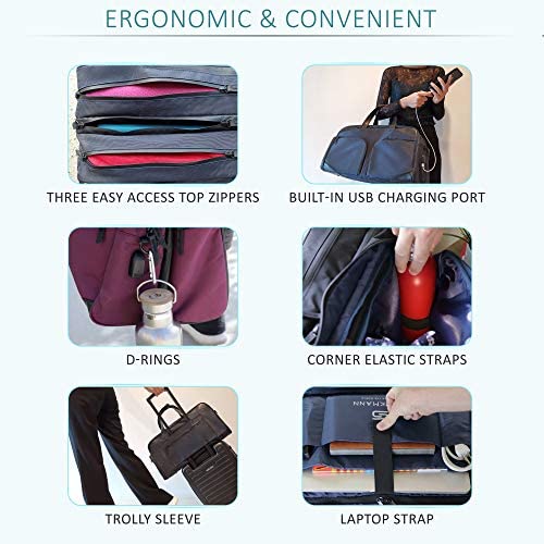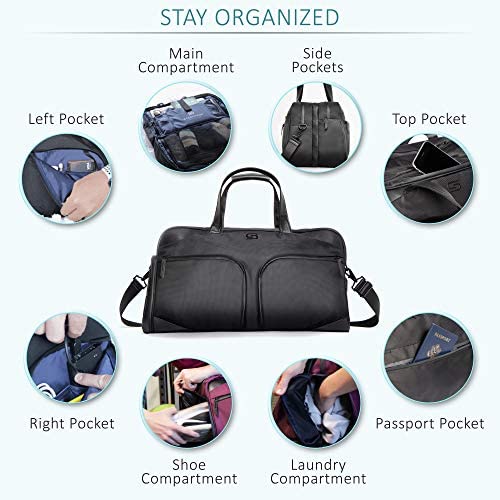 SPACIOUS AND ORGANIZED: Worry you can’t fit everything you need in your bag for a trip? STERKMANN weekender duffle bag has a total of 19 pockets and compartments to ensure that each and every one of your travel essentials has a spot of its own.
