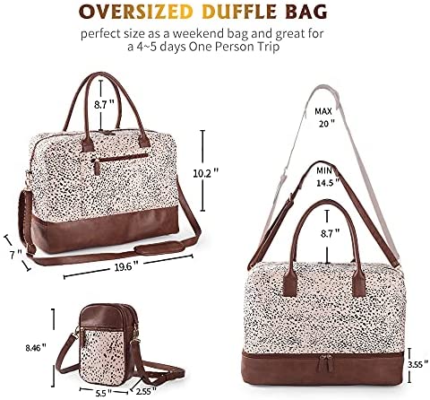 WELL CRAFTED – This weekender bag is crafted with Bohemian soft canvas and PU leather shoe pockets. Added a luggage sleeve allows an easy carry, and a padded removable cross-body adjustable strap make this duffel easy to bring with you wherever you are going