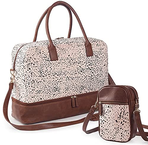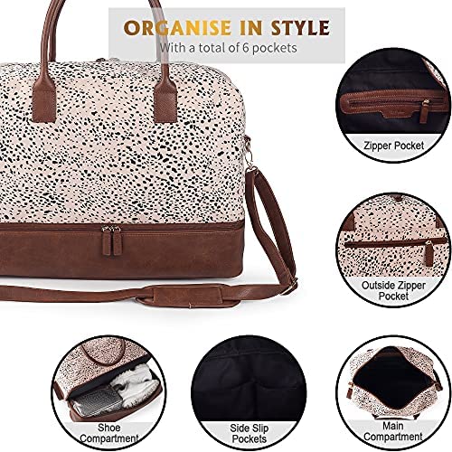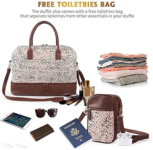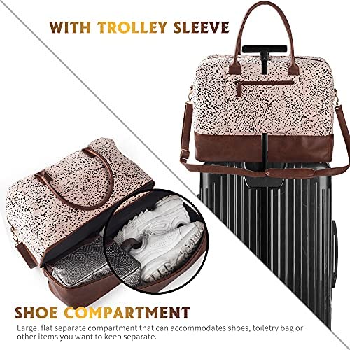 SHOE COMPARTMENT & LUGGAGE SLEEVE: This weekender bag for women travel has a shoe compartment which can stores your shoes or dirty clothes, keeps your shoes or dirty clothes separate from the main compartment. Keeps you organized and takes the hassle out of packing! Back side sleeve allows you to slide it over the standard handle of a rolling suitcase or luggage.