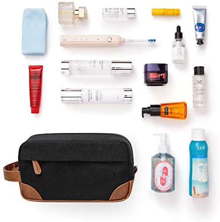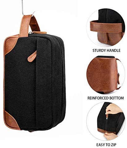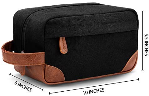 Quality & water-resistant material: The toiletry travel bag is made of sturdy & wearable canvas material that has no unpleasant smell. The canvas and leather make the bag itself very well-constructed to keep the shape and protect your toiletries from splashed water