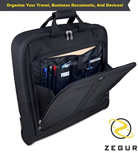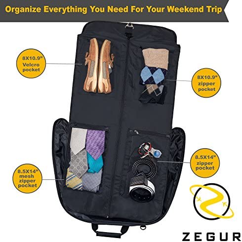 ✈️ MAKES YOUR TRAVEL FUN ENJOYABLE AND STRESS-FREE: Whether you’re headed for a business trip or a weekend getaway, the Zegur garment bag keeps you organized and takes the hassle out of packing! Thanks to multiple interior zipper pockets, it maximizes storage capacity, holding everything from suits, dresses to shoes and ties. For even more space, we added an exterior pocket that provides easy access to electronics and travel or business documents, so you will have a fantastic trip!