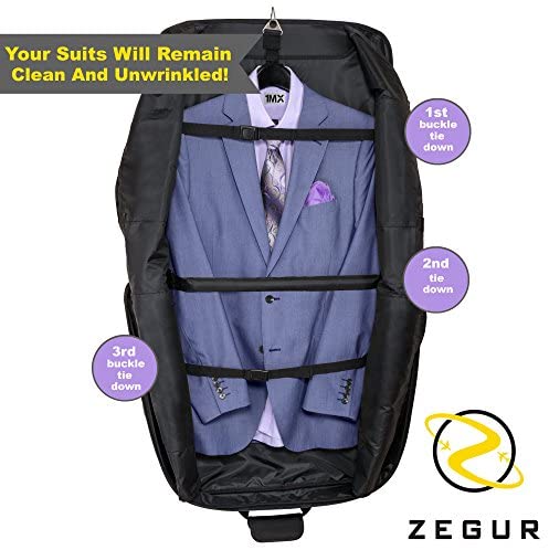 🌞 LOOK GREAT AND TRAVEL IN STYLE: With a sleek, fashionable design, the Zegur garment bag luggage ensures that both men and women travel in style! It also features an adjustable and detachable shoulder strap, providing versatility and comfort. For added convenience, it fits in all large overhead bins.